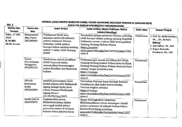 Hutabarat, Rugun Romaida Jadwal Sidang Skripsi. Universitas Tarumanagara.