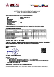 Aprilia, Indah Siti Surat Tugas Mengajar Universitas Tarumanagara. Universitas Tarumanagara.
