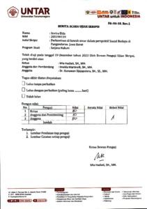 Martinelli, Imelda Penguji Tugas Akhir Fakultas Hukum. Universitas Tarumanagara.