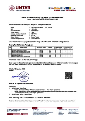 Martinelli, Imelda Surat Tugas Mengajar. Universitas Tarumanagara.