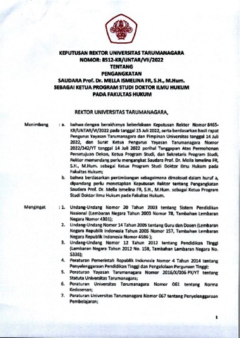 Ismelina, Mella KEPUTUSAN REKTOR UNIVERSITAS TARUMANAGARA NOMOR: 8512-KR/UNTAR/VII/2022. Universitas Tarumanagara.