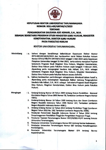 Adhari, Ade KEPUTUSAN REKTOR UNIVERSITAS TARUMANAGARA NOMOR: 9011-KR/UNTAR/V/2023. Universitas Tarumanagara.