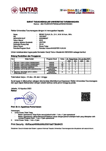 Djaja, Benny Surat Tugas. Universitas Tarumanagara.