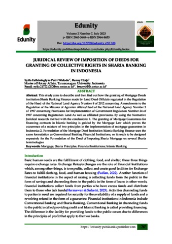 Djaja, Benny (2023) JURIDICAL REVIEW OF IMPOSITION OF DEEDS FOR GRANTING OF COLLECTIVE RIGHTS IN SHARIA BANKING IN INDONESIA. Edunity, 2 (7).