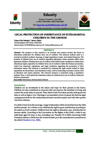 Subagia, Fatsya Gita and Djaja, Benny (2023) Legal Protection Of Inheritance Of Extramarital Children In The Chinese. Edunity, 2 (7).