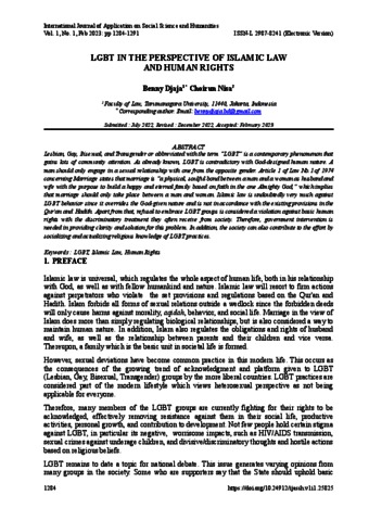 Djaja, Benny and Nisa, Choirun (2023) LGBT In The Perspective Of Islamic Law And Human Rights. International Journal of Application on Social Science and Humanities, 1 (1).