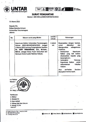 Firmansyah, Hery KEPUTUSAN REKTOR UNIVERSITAS TARUMANAGARA NOMOR: 8335-KR/UNTAR/III/2022. Universitas Tarumanagara.