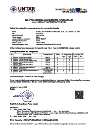 Sitabuana, Tundjung Herning Surat Tugas Mengajar. Universitas Tarumanagara.