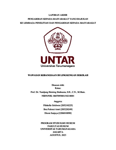 Sitabuana, Tundjung Herning Wawasan Kebangsaan Di Lingkungan Sekolah: Laporan Akhir Pengabdian Kepada Masyarakat. Universitas Tarumanagara.