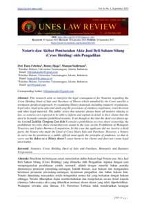 Febrina, Dwi Tiara and Djaja, Benny and Sudirman, Maman (2023) Notaris dan Akibat Pembatalan Akta Jual Beli Saham Silang (Cross Holding) oleh Pengadilan. Unes Law Review, 6 (1).