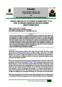Hardi, Zakiyah Triyana and Djaja, Benny (2023) JURIDICAL ANALYSIS OF THE DIVISION OF INHERITANCE TO THE HEIRS OF DIFFERENT MARRIAGES (DECISION NUMBER 435/PDT/2018/PT MDN). Edunity, 2 (9).