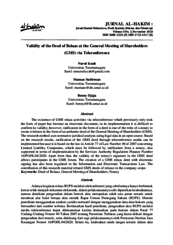 Izzah, Nurul and Sudirman, Maman and Djaja, Benny (2023) Validity of the Deed of Relaas at the General Meeting of Shareholders (GMS) via Teleconference. Jurnal Al-Hakim, 5 (2).
