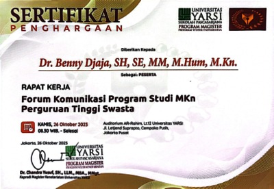 Djaja, Benny Sertifikat. ..