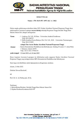 Rahayu, Mella Ismelina F Surat Tugas Nomor 578/BAN-PT/SPT-AK-A-2022. ..