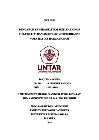 RANGGA, ADRIANUS (2022) PENGARUH LEVERAGE, FIRM SIZE, EARNINGS VOLATILITY, DAN ASSET GROWTH TERHADAP VOLATILITAS HARGA SAHAM. Skripsi thesis, Universitas Tarumanagara.