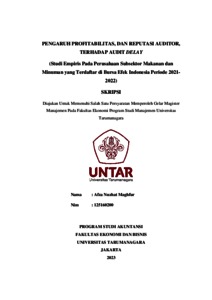 Maghfur, Afza Nuzhat (2023) PENGARUH PROFITABILITAS, DAN REPUTASI AUDITOR, TERHADAP AUDIT DELAY (Studi Empiris Pada Perusahaan Subsektor Makanan dan Minuman yang Terdaftar di Bursa Efek Indonesia Periode 2021- 2022). Skripsi thesis, Universitas Tarumanagara.