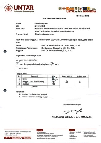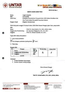 Djajaputra, Gunawan Berita Acara Ujian Tesis. Universitas Tarumanagara.