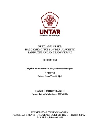 Daniel Christianto, Pertama PERILAKU GESER BALOK REACTIVE POWDER CONCRETE TANPA TULANGAN TRANSVERSAL. PERILAKU GESER BALOK REACTIVE POWDER CONCRETE TANPA TULANGAN TRANSVERSAL.