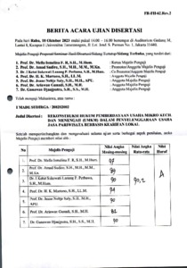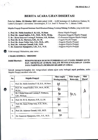 Sudiro, Amad Berita Acara Ujian Disertasi. Universitas Tarumanagara.