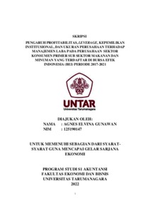 GUNAWAN, AGNES ELVINA (2022) PENGARUH PROFITABILITAS, LEVERAGE, KEPEMILIKAN INSTITUSIONAL, DAN UKURAN PERUSAHAAN TERHADAP MANAJEMEN LABA PADA PERUSAHAAN SEKTOR KONSUMEN PRIMER SUB SEKTOR MAKANAN DAN MINUMAN YANG TERDAFTAR DI BURSA EFEK INDONESIA (BEI) PERIODE 2017-2021. Skripsi thesis, Universitas Tarumanagara.