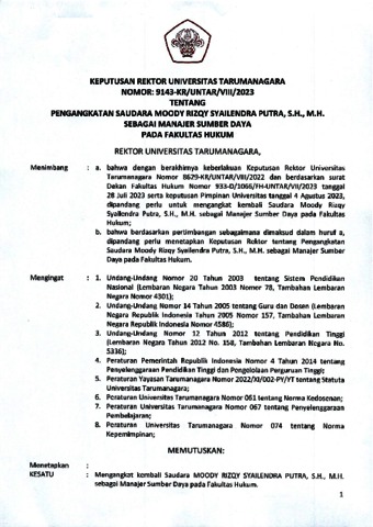 Putra, Moody Rizqy Syailendra Keputusan Rektor Universitas Tarumanagara Nomor: 9143-KR/UNTAR/VIII/2023. Universitas Tarumanagara.