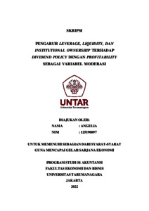 Angelia, Angelia (2022) PENGARUH LEVERAGE, LIQUIDITY, DAN INSTITUTIONAL OWNERSHIP TERHADAP DIVIDEND POLICY DENGAN PROFITABILITY SEBAGAI VARIABEL MODERASI. Skripsi thesis, Universitas Tarumanagara.