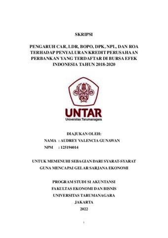 GUNAWAN, AUDREY VALENCIA (2022) PENGARUH CAR, LDR, BOPO, DPK, NPL, DAN ROA TERHADAP PENYALURAN KREDIT PERUSAHAAN PERBANKAN YANG TERDAFTAR DI BURSA EFEK INDONESIA TAHUN 2018-2020. Skripsi thesis, Universitas Tarumanagara.