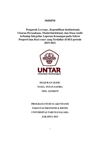 SAFIRA, INTAN (2023) Pengaruh Leverage, Kepemilikan Institusional, Ukuran Perusahaan, Modal Intelektual, dan Masa Audit terhadap Integritas Laporan Keuangan pada Sektor Properti dan Real estate yang Terdaftar di BEI periode 2019-2021. Skripsi thesis, Universitas Tarumanagara.