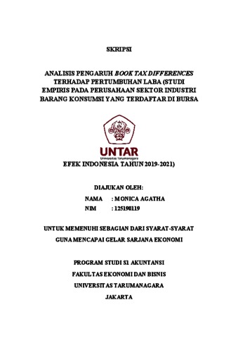 AGATHA, MONICA (2023) ANALISIS PENGARUH BOOK TAX DIFFERENCES TERHADAP PERTUMBUHAN LABA (STUDI EMPIRIS PADA PERUSAHAAN SEKTOR INDUSTRI BARANG KONSUMSI YANG TERDAFTAR DI BURSA EFEK INDONESIA TAHUN 2019-2021). Skripsi thesis, Universitas Tarumanagara.