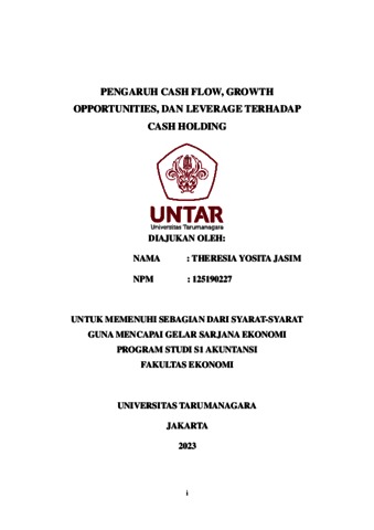 JASIM, THERESIA YOSITA (2023) PENGARUH CASH FLOW, GROWTH OPPORTUNITIES, DAN LEVERAGE TERHADAP CASH HOLDING. Skripsi thesis, Universitas Tarumanagara.