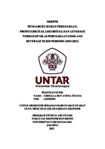 TIYANA, URSULLA RUT AVENA (2022) PENGARUH UKURAN PERUSAHAAN, PROFITABILITAS, LIKUIDITAS, DAN LEVERAGE TERHADAP NILAI PERUSAHAAN FOOD AND BEVERAGE DI BEI PERIODE (2019-2021). Skripsi thesis, Universitas Tarumanagara.