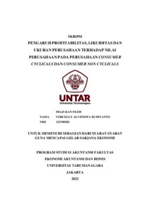 BUDIYANTO, VERCELLY ALVIONITA (2022) PENGARUH PROFITABILITAS, LIKUIDITAS DAN UKURAN PERUSAHAAN TERHADAP NILAI PERUSAHAAN PADA PERUSAHAAN CONSUMER CYCLICALS DAN CONSUMER NON CYCLICALS. Skripsi thesis, Universitas Tarumanagara.