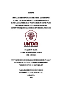 ARIFIN, AGNES TASYA (2023) PENGARUH KOMPETENSI STRATEGI, KOMPETENSI ETIKA TERHADAP KOMPETENSI JARINGAN DAN DAMPAKNYA TERHADAP PERTUMBUHAN BISNIS PADA UMKM PAKAIAN DI TANAHABANG (DENGAN KOMPETENSI JARINGAN SEBAGAI VARIABEL MEDIASI). Skripsi thesis, Universitas Tarumanagara.