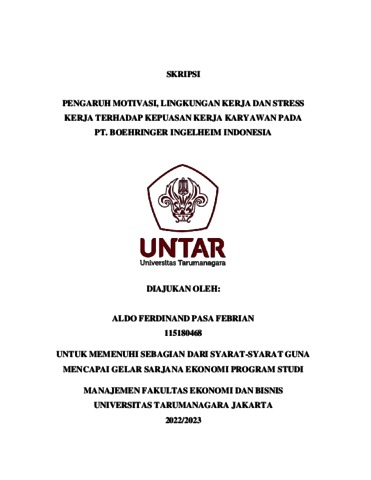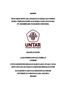 FEBRIAN, ALDO FERDINAND PASA (2023) PENGARUH MOTIVASI, LINGKUNGAN KERJA DAN STRESS KERJA TERHADAP KEPUASAN KERJA KARYAWAN PADA PT. BOEHRINGER INGELHEIM INDONESIA. Skripsi thesis, Universitas Tarumanagara.