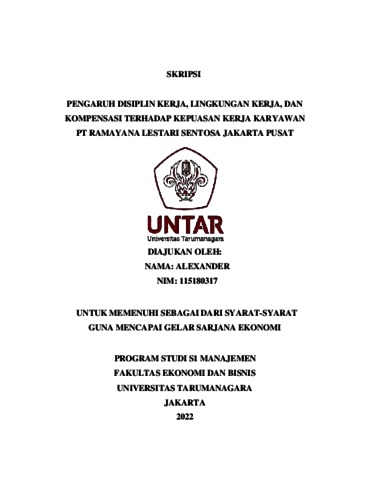 ALEXANDER, ALEXANDER (2022) PENGARUH DISIPLIN KERJA, LINGKUNGAN KERJA, DAN KOMPENSASI TERHADAP KEPUASAN KERJA KARYAWAN PT RAMAYANA LESTARI SENTOSA JAKARTA PUSAT. Skripsi thesis, Universitas Tarumanagara.