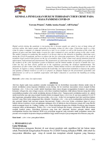 Prianto, Yuwono and Fuzain, Nabila Annisa and Farhan, Afif (2021) KENDALA PENEGAKAN HUKUM TERHADAP CYBER CRIME PADA MASA PANDEMI COVID-19. SENAPENMAS.