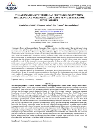 Nadida, Camila Tatya and Melissa, Wihelmina and Pratama, Diza and Prianto, Yuwono (2022) TINJAUAN NORMATIF TERHADAP PERTANGGUNGJAWABAN TINDAK PIDANA KORUPSI DALAM KASUS PENYUAPAN EKSPOR BENIH LOBSTER. SERINA IV.