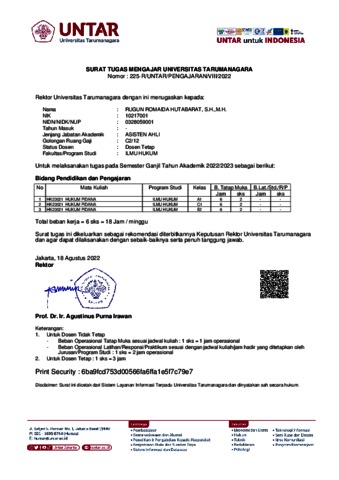 Hutabarat, Rugun Romaida Surat Tugas Mengajar. Universitas Tarumanagara.