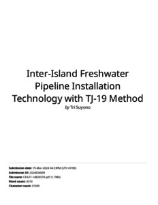 Pranoto, Wati Asriningsih Inter-Island FreshwaterPipeline Installation Technology with TJ-19 Method. [Show/Exhibition]