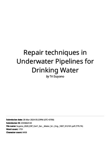 Repair techniques in Underwater Pipelines for Drinking Water.pdf Download (2MB) | Preview |