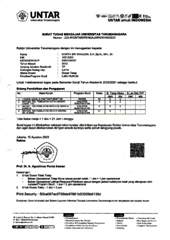 Wahjuni, Marta Sri Surat Tugas Mengajar. Universitas Tarumanagara.