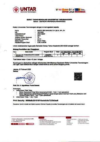 Wahjuni, Marta Sri Surat Tugas Mengajar. Universitas Tarumanagara.