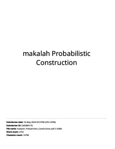 BASUKI ANONDHO Probabilistic Construction Project Duration Prediction Models For High Rise Building Based on Earned Schedule Method In Jakarta TURNITIN.pdf Download (1MB) | Preview |