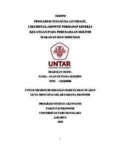 Massidy, Alan Octama (2023) PENGARUH FINANCIAL LEVERAGE, LIKUIDITAS, GROWTH TERHADAP KINERJA KEUANGAN PADA PERUSAHAAN SEKTOR MAKANAN DAN MINUMAN. Skripsi thesis, Fakultas Ekonomi dan Bisnis.