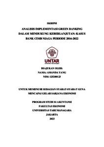 Yang, Amanda (2023) ANALISIS IMPLEMENTASI GREEN BANKING DALAM MENDUKUNG KEBERLANJUTAN: KASUS BANK CIMB NIAGA PERIODE 2016-2022. Skripsi thesis, Fakultas Ekonomi dan Bisnis.