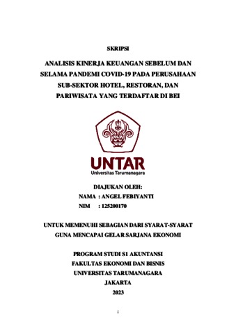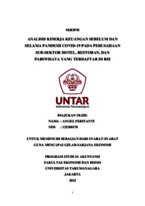 Febiyanti, Angel (2023) ANALISIS KINERJA KEUANGAN SEBELUM DAN SELAMA PANDEMI COVID-19 PADA PERUSAHAAN SUB-SEKTOR HOTEL, RESTORAN, DAN PARIWISATA YANG TERDAFTAR DI BEI. Skripsi thesis, Fakultas Ekonomi dan Bisnis.