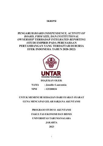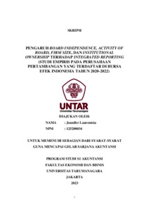 Laurentsia, Jennifer (2023) PENGARUH BOARD INDEPENDENCE, ACTIVITY OF BOARD, FIRM SIZE, DAN INSTITUTIONAL OWNERSHIP TERHADAP INTEGRATED REPORTING (STUDI EMPIRIS PADA PERUSAHAAN PERTAMBANGAN YANG TERDAFTAR DI BURSA EFEK INDONESIA TAHUN 2020-2022). Skripsi thesis, Universitas Tarumanagara.