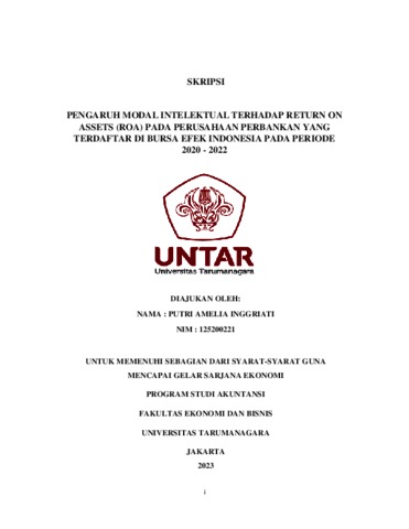 Inggriati, Putri Amelia (2023) PENGARUH MODAL INTELEKTUAL TERHADAP RETURN ON ASSETS (ROA) PADA PERUSAHAAN PERBANKAN YANG TERDAFTAR DI BURSA EFEK INDONESIA PADA PERIODE 2020 - 2022. Skripsi thesis, Universitas Tarumanagara.