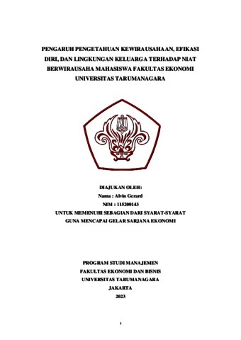 Gerard, Alvin (2023) PENGARUH PENGETAHUAN KEWIRAUSAHAAN, EFIKASI DIRI, DAN LINGKUNGAN KELUARGA TERHADAP NIAT BERWIRAUSAHA MAHASISWA FAKULTAS EKONOMI UNIVERSITAS TARUMANAGARA. Skripsi thesis, Universitas Tarumanagara.