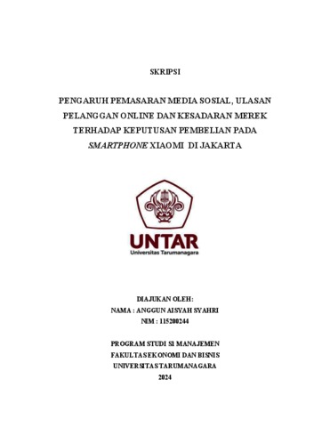 Syahri, Anggun Aisyah (2023) PENGARUH PEMASARAN MEDIA SOSIAL, ULASAN PELANGGAN ONLINE DAN KESADARAN MEREK TERHADAP KEPUTUSAN PEMBELIAN PADA SMARTPHONE XIAOMI DI JAKARTA. Skripsi thesis, Universitas Tarumanagara.
